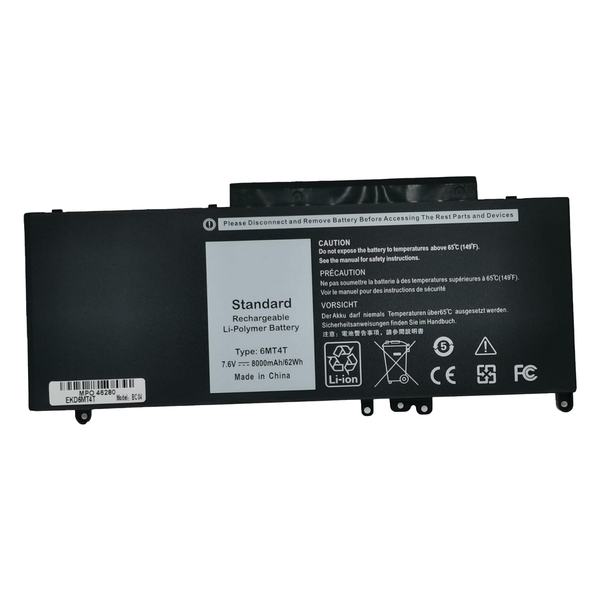 Capacidad : 7.6V 8000mAh 62Wh .